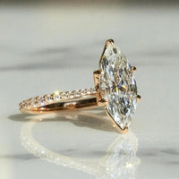 ✨ A true statement of elegance, this 4 CT Marquise Cut Moissanite Engagement Ring shines with brilliance and sophistication. The elongated marquise cut symbolizes vision and endless love, enhanced by a unique tulip-inspired petal prong setting that holds the stone securely while allowing maximum sparkle.