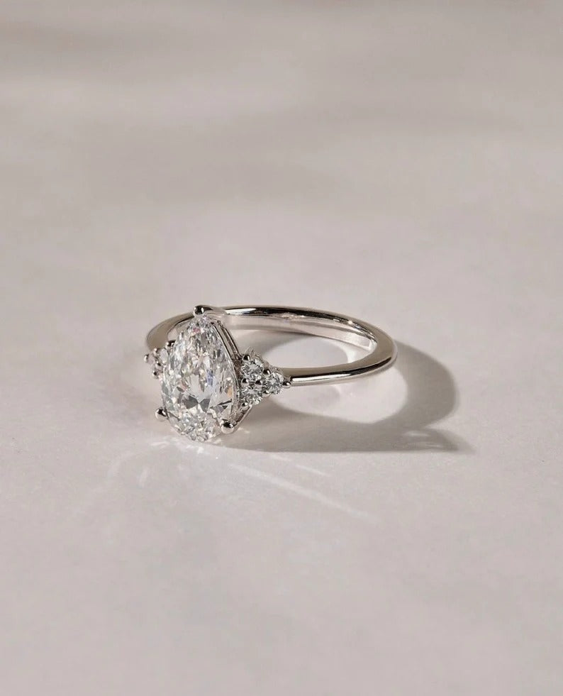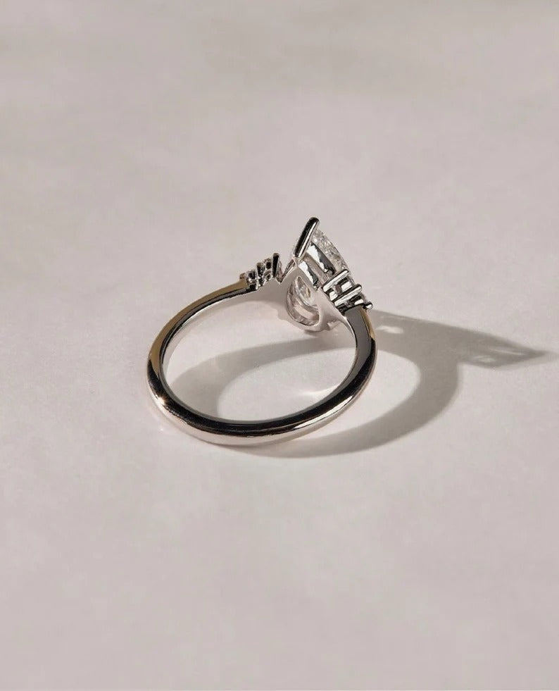 ✨ Romantic, dainty, and full of brilliance — this 1.5 CT Pear Cut Cluster Engagement Ring is designed to capture the beauty of love in its purest form. The elegant pear-shaped center stone (approx. 9x6MM) symbolizes tears of joy and everlasting devotion, while sparkling round accent stones create a delicate cluster, adding radiance to the timeless three-stone setting.