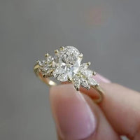 Radiate timeless elegance with this 1.5 Carat Oval Cut Moissanite Sunburst Halo Ring, a true vintage-inspired masterpiece. The brilliant center stone is encircled by a delicate floral halo, creating a romantic sunburst effect that catches light from every angle.