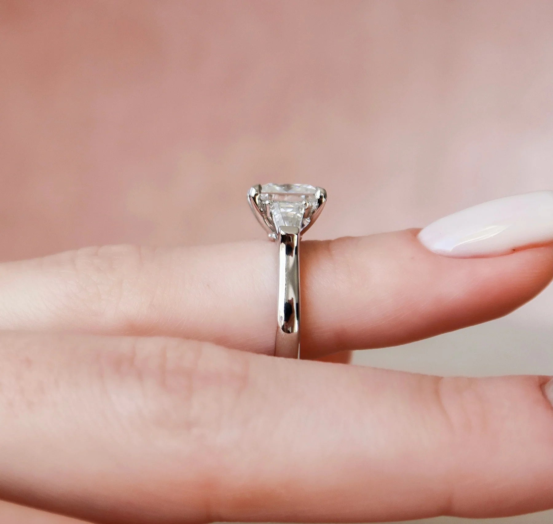 The 3.0CT lab-grown Moissanite captures every ray of light with exceptional brilliance, while the 3-stone design symbolizes your past, present, and future together. Available in 14K yellow, white, or rose gold, this ring combines timeless beauty with modern craftsmanship.