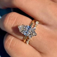 2.5 CT Marquise Cut Moissanite Engagement Ring Set Marquise Bridal Ring Set 14K Gold Wedding Ring Set Anniversary Ring Set For Women