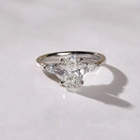 Celebrate timeless elegance with a modern twist. This stunning cluster engagement ring features a brilliant oval cut center stone, surrounded by a delicate arrangement of accent stones that enhance its brilliance and create a breathtaking floral-inspired silhouette.