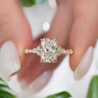 2 CT Radiant Cut Moissanite Engagement Ring Solid Gold Wedding Ring 14K Gold Half Eternity Band Diamond Ring Hidden Halo Anniversary Ring