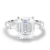 This 4.40CT Emerald Cut Solitaire Engagement Ring is a true statement of sophistication. The emerald cut moissanite (or lab grown diamond), known for its clean lines and hall-of-mirrors effect, captures light with an elegant brilliance that’s both bold and refined.