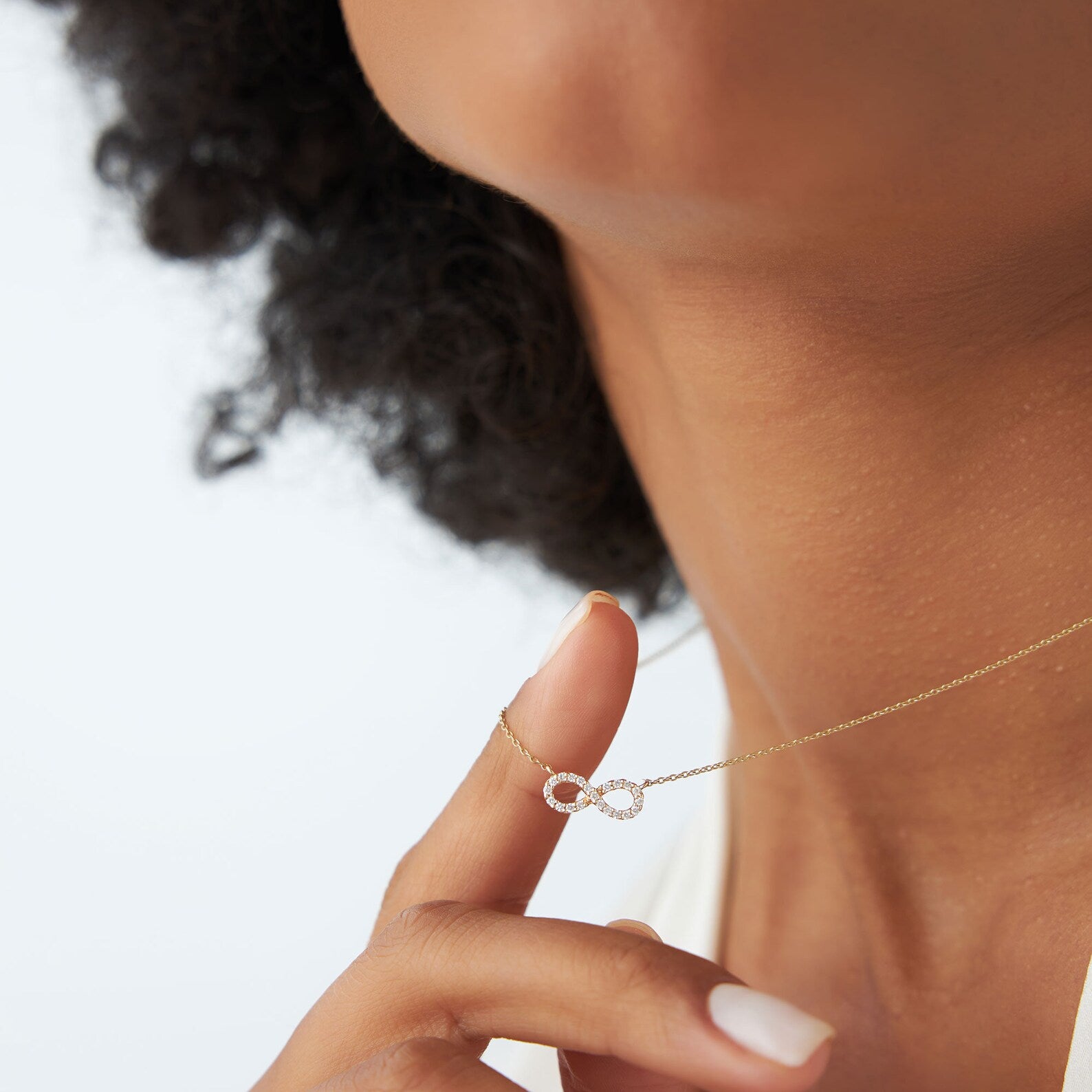 Celebrate the bond that knows no end with our Diamond Infinity Necklace, exquisitely crafted in solid 14K gold. The elegant infinity charm is adorned with sparkling round cut micro pave diamonds, adding a delicate shimmer that complements any style.
