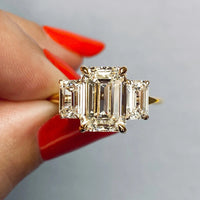Make a timeless statement with this Emerald Cut Three-Stone Moissanite Ring, crafted in luminous 14K solid gold. Featuring a striking step-cut center stone flanked by two perfectly matched side stones, this ring exudes sophistication and power. ๐๐