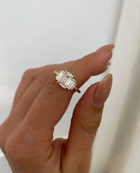 ✥Five Stone Moissanite Engagement Ring Emerald Cut Engagement Ring Five Stone Engagement Ring Moissanite Five Stone Emerald Cut Ring