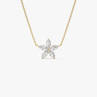 Delicate, feminine, and utterly mesmerizing β this five-petal flower pendant features sparkling marquise-cut stones arranged in a floral silhouette, catching light from every angle. Suspended on a dainty chain, itβs the perfect harmony of elegance and symbolism, handcrafted in 14K Solid Gold with your choice of Moissanite or Lab Grown Diamond.