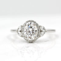 Center Stone: Oval Cut Moissanite (Approx. 2.0 CT, D Color, VVS Clarity)
