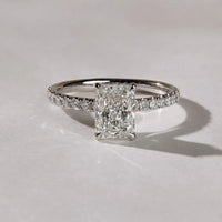 Turn heads with this brilliant Radiant Cut Moissanite Engagement Ring, set on a shimmering pavé diamond band. Crafted in sleek 14K White Gold, this ring radiates elegance with a touch of glam. 💎
