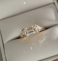 ✥Three Stone Emerald Cut Moissanite Engagement Ring