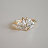 Two souls, one story ๐. This 2.5 Carat Toi Et Moi Moissanite Engagement Ring pairs a striking trillion cut with a romantic pear cut, set in a bypass style that symbolizes unity and duality. It's a modern love story, captured in fine 14K gold โจ.